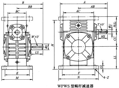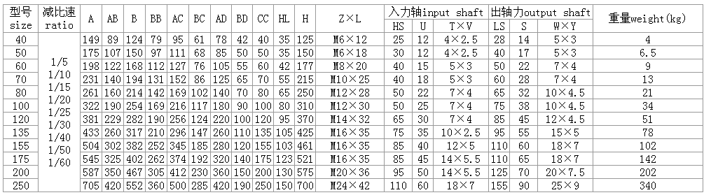 WPWS40、WPWS50、WPWS60、WPWS70、WPWS80、WPWS100、WPWS120、WPWS135、WPWS155、WPWS175、WPWS200、WPWS250、型蝸輪蝸桿減速器