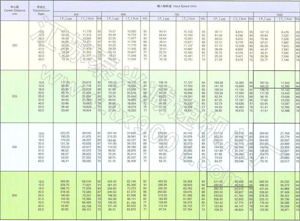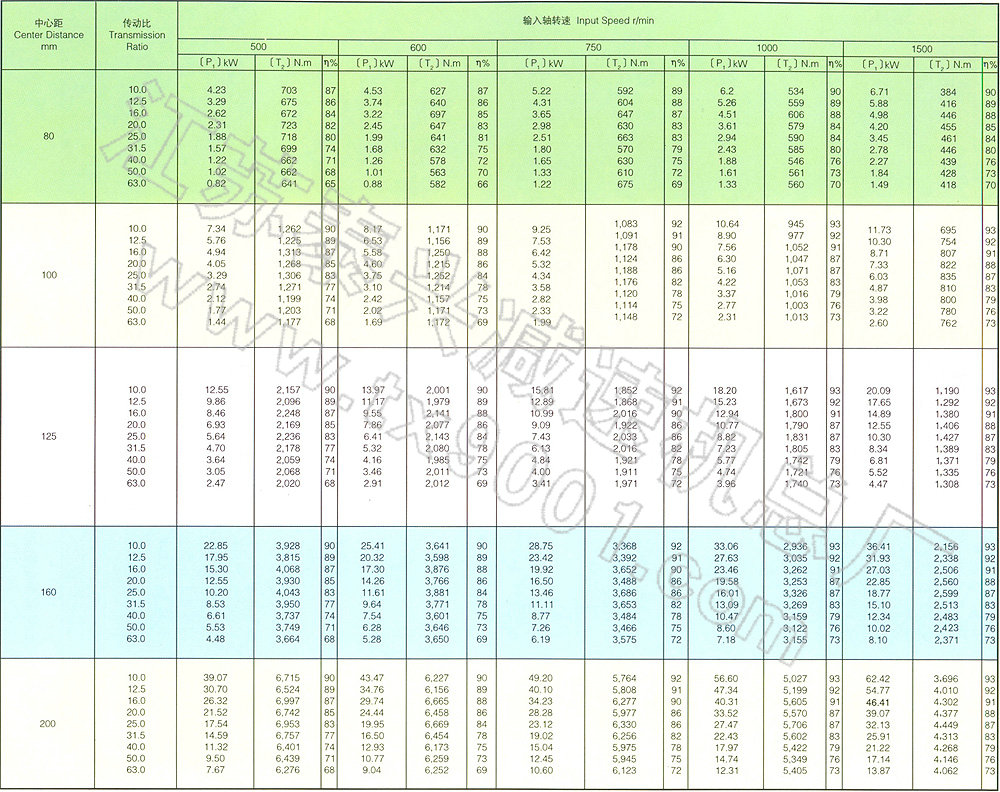 五、平面包絡(luò)環(huán)面蝸桿減速器額定輸入軸功率表