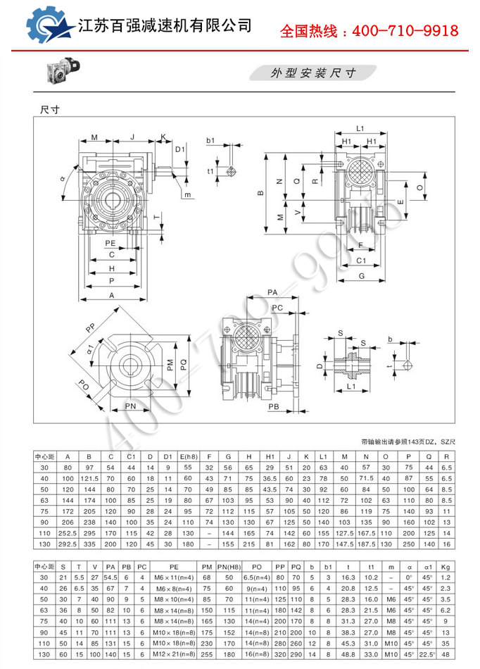 RV系列鋁合金蝸輪蝸桿減速機(jī)-安裝方式